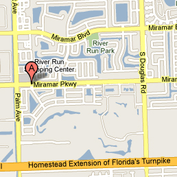 We are centrally located on the corner of Miramar Parkway and Palm Avenue, in the River Run Shopping Center.